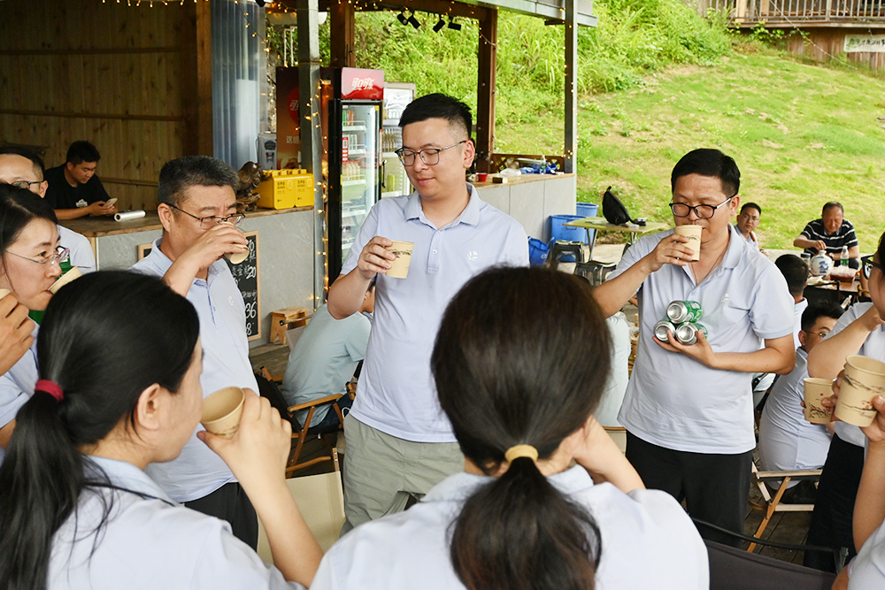 下午一直下着大雨,到活动开始雨就停了,还开出了太阳,预示着风调雨顺,公司业务步步攀升。2点开始,员工们陆续到了活动现场,自由结伴爬山找矿。因活动场地是一个废弃的矿山,还有部分发亮的萤石,员工们饶有兴趣,很多人都带上了几块回家摆放。3点过后,烧烤架上飘散出阵阵香气,同事们分工协作,有人化身"金牌烤手",配上啤酒饮料,欢声笑语间尽显团队协作的魅力。随后的创意K歌环节更是点燃全场热情,即兴献唱引发阵阵喝彩,现场化作一片欢乐的海洋。