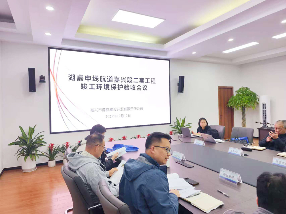 2025年12月12日湖嘉申线航道嘉兴段二期工程业主单位(嘉兴市港航建设开发有限责任公司)在嘉兴市港发公司北附楼二楼会议室举办《湖嘉申线航道嘉兴段二期工程》环境保护设施竣工验收会议》。我公司作为该项目环境保护设施竣工验收调查单位对竣工环境保护验收调查及本项目环保措施落实情况进行了汇报。